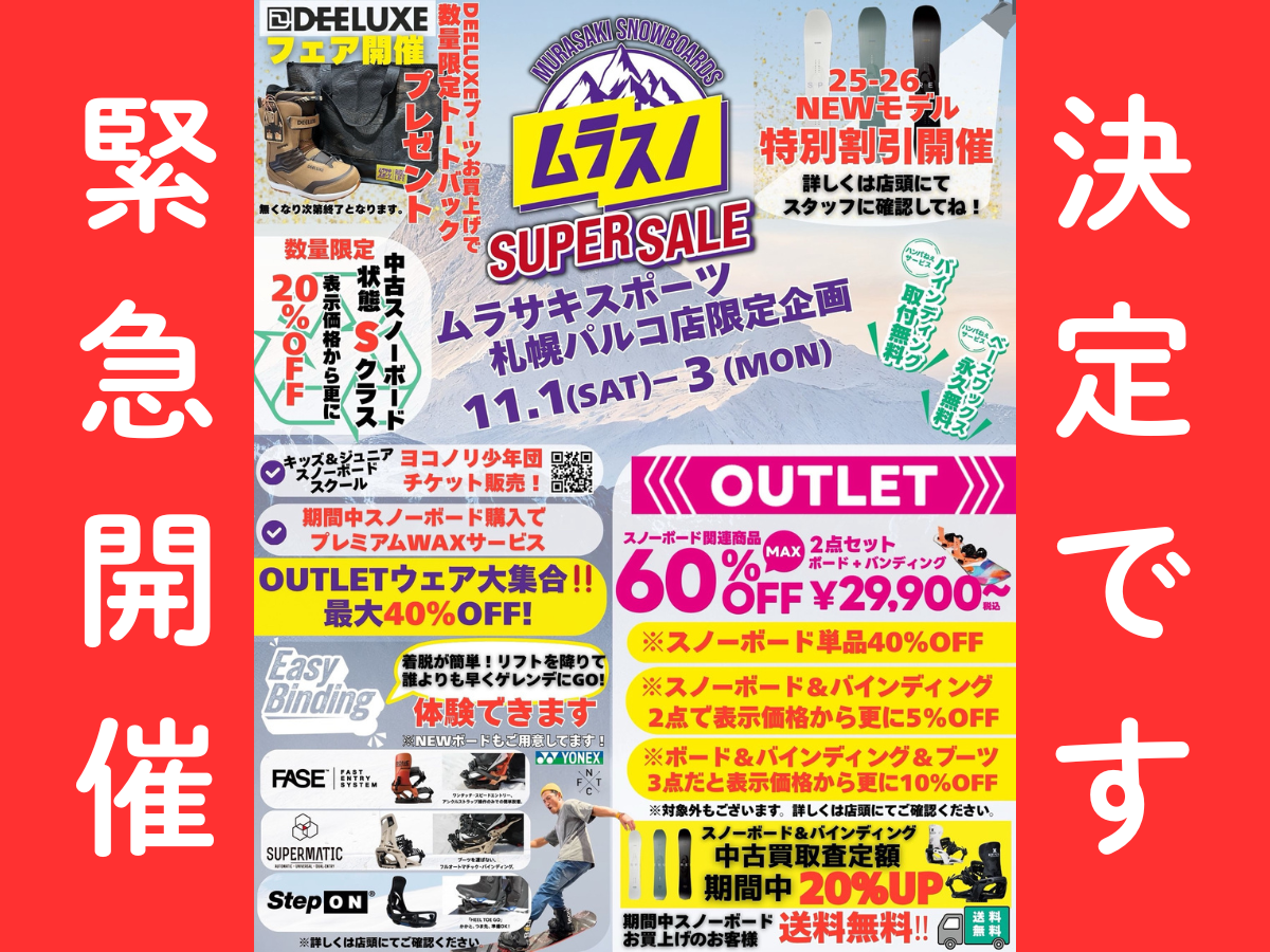 緊急開催決定!! シーズン前のスノーボードがお得に買えちゃう!!