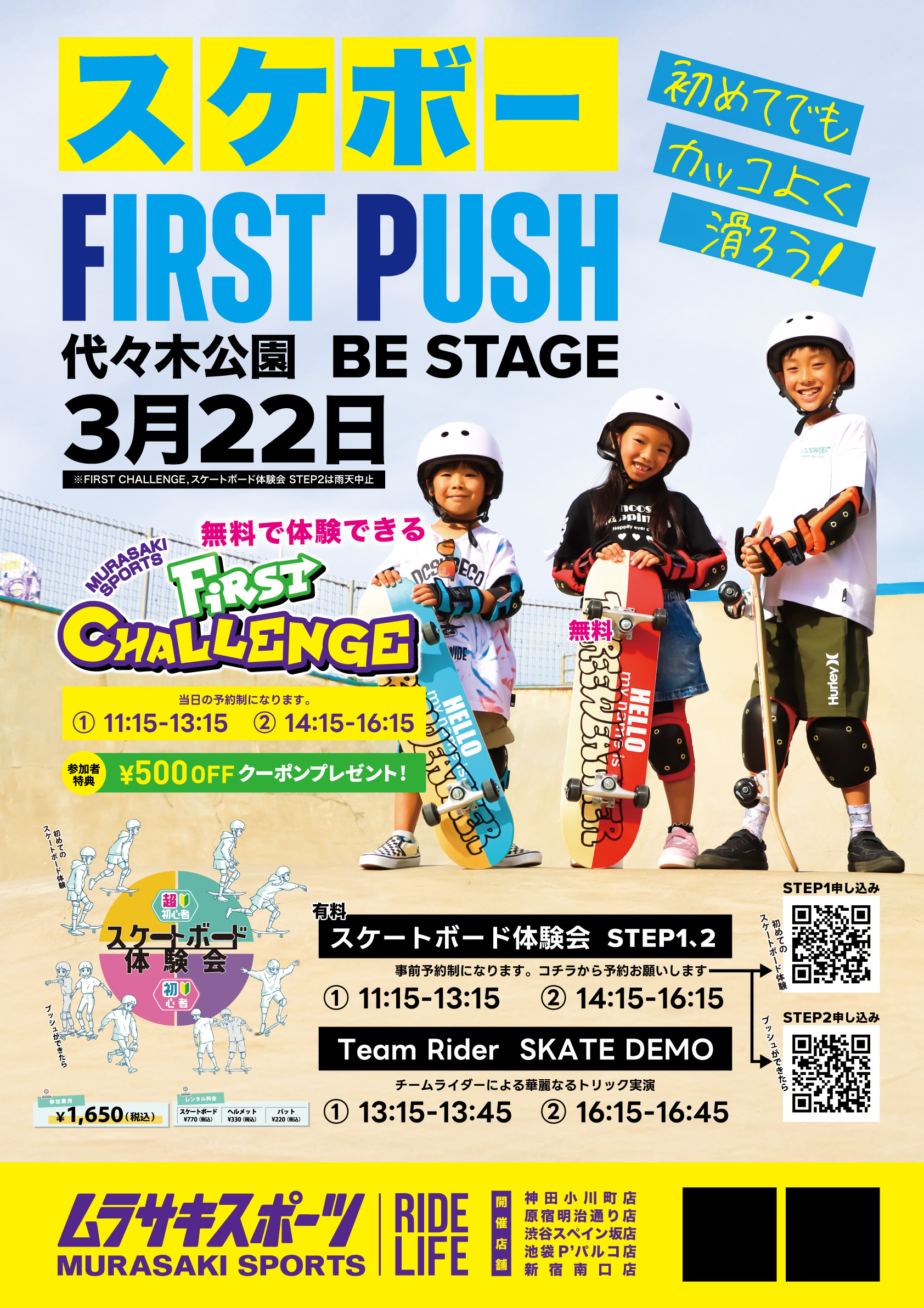 5店舗合同「スケボーFirst Push『初めてでもカッコよく滑ろう』~at 代々木公園BE STAGE~」