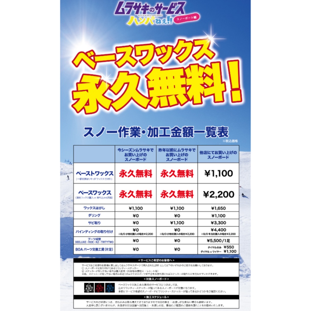 ベースワックス永久無料サービス(ムラサキスポーツ購入商品に限る)