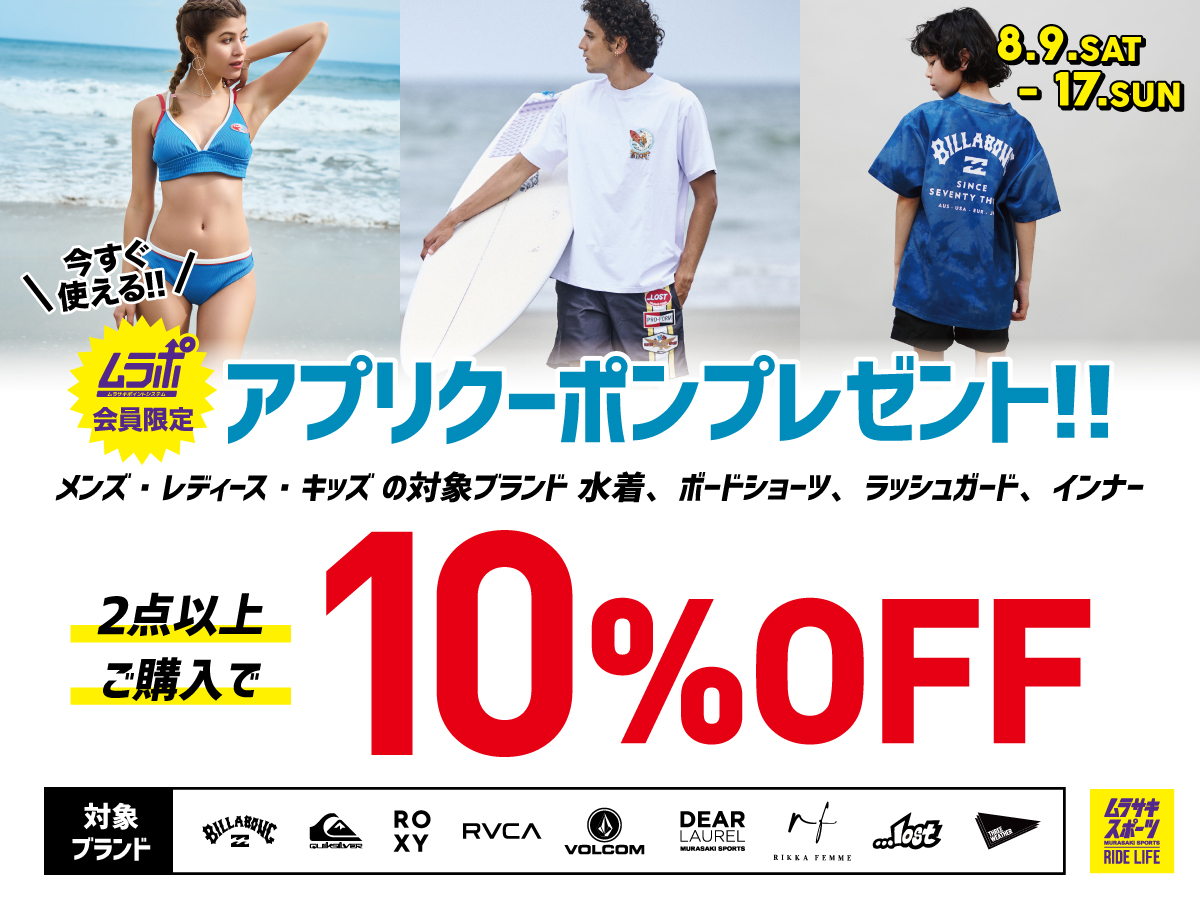8月9日スタート!!期間限定クーポン★海パン、ミズギ、ラッシュガードのまとめ買いがお得!!