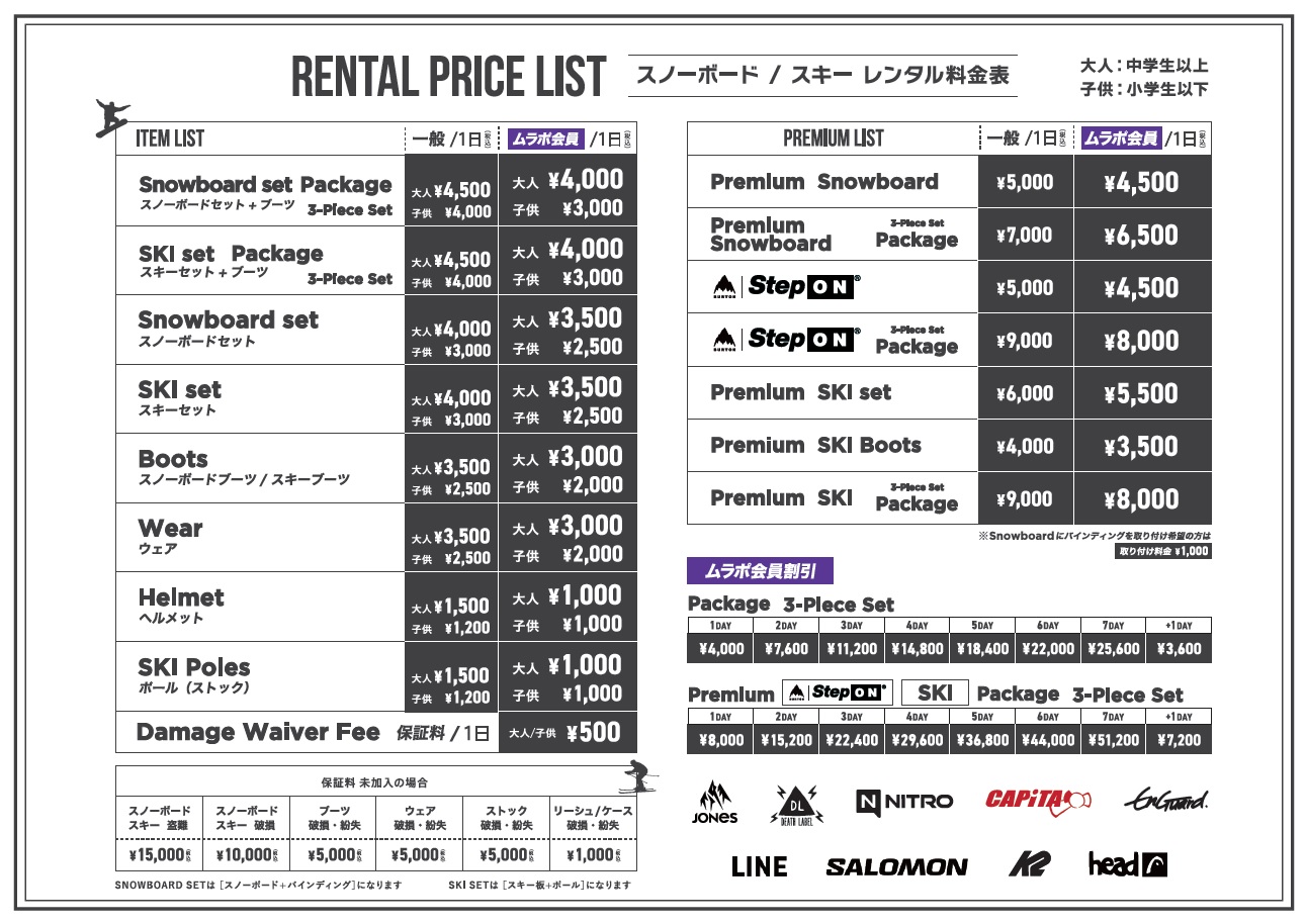 ※スノーボードアイテムに関して、販売は一部小物のみとなります。