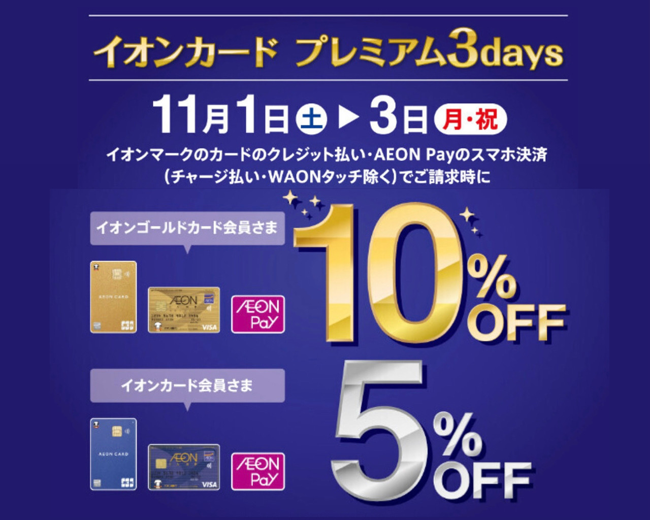 【 イオンカードプレミアム 3days 請求時5%・10%OFF 】