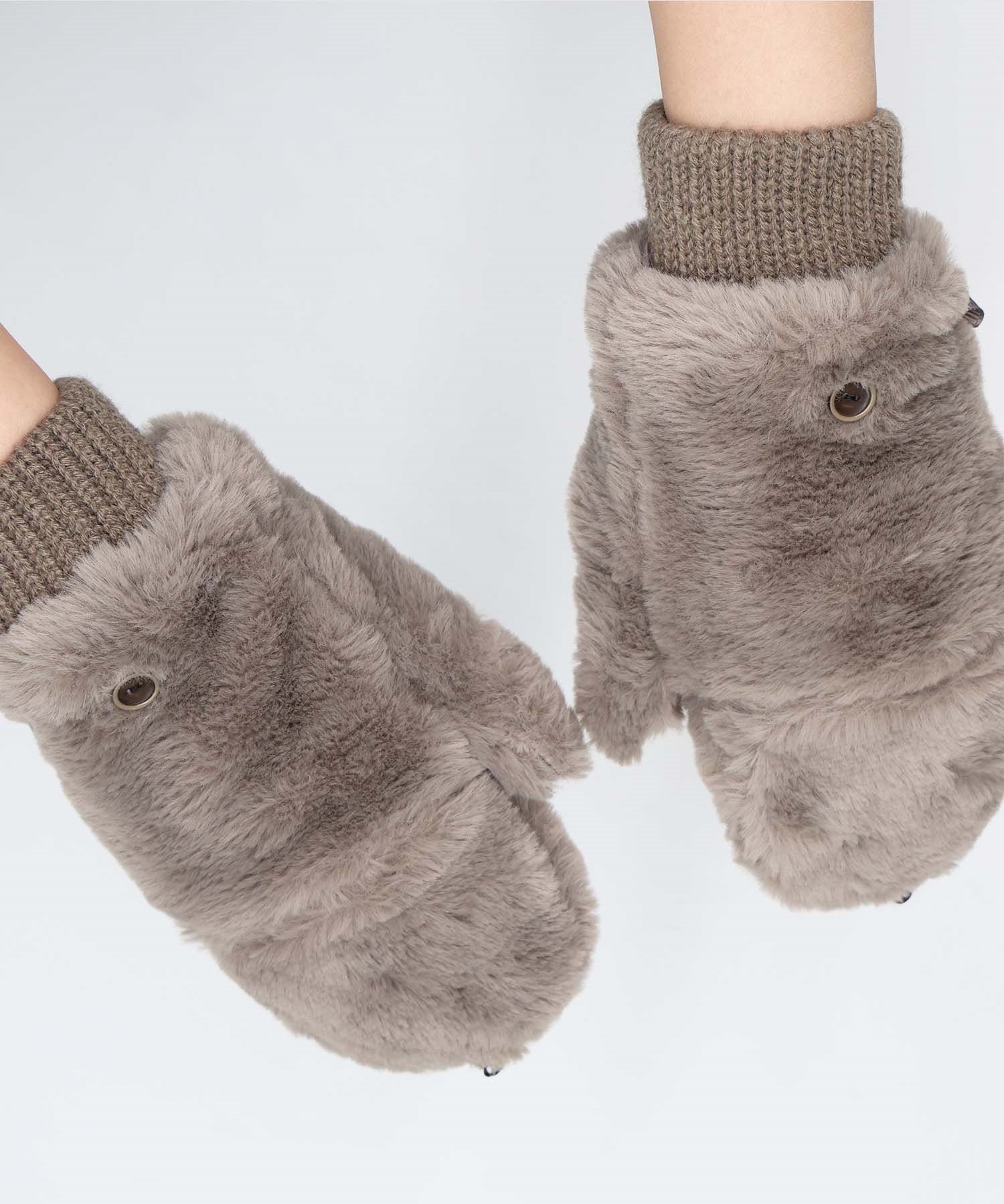 2Wayで使えるファーミトン手袋
