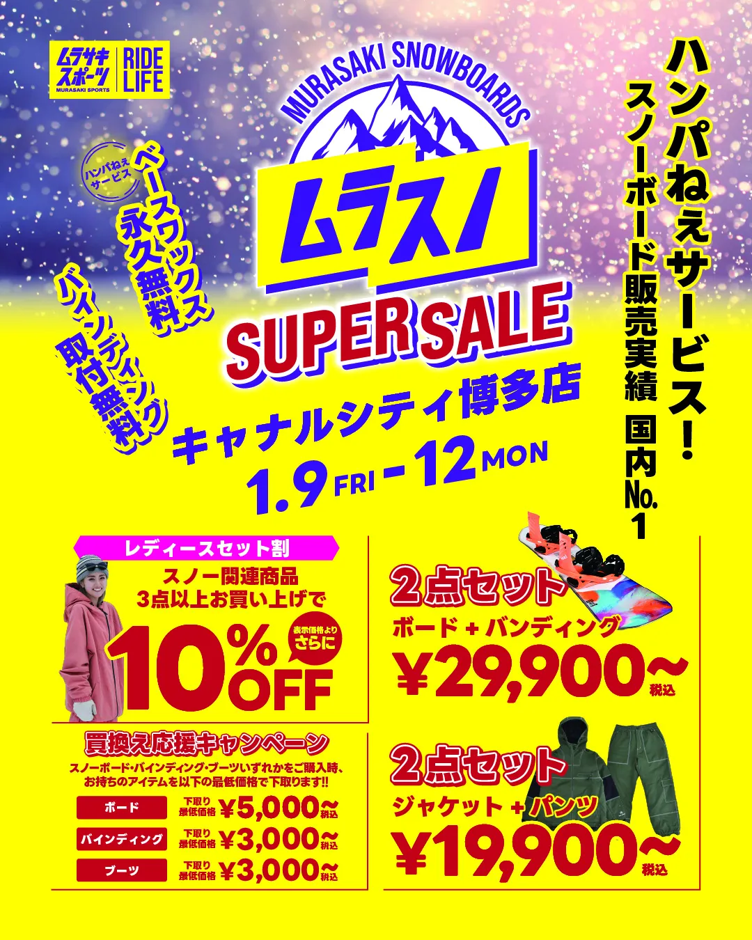 1/9(金)〜1/12(月)【最大級】ムラスポSUPER SALE 『ムラスノ』第2弾開催! スノーボードを買うなら今!
