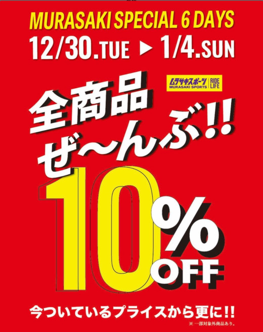 【本日最終日】全品10%OFF!ムラスポ最大の6日間が間もなく終了!